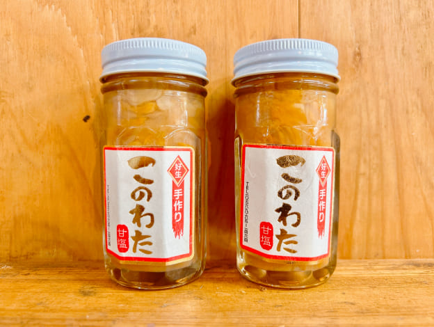 イカの姿焼き、フグ唐揚げ、海苔佃煮、もずく、貝類全般